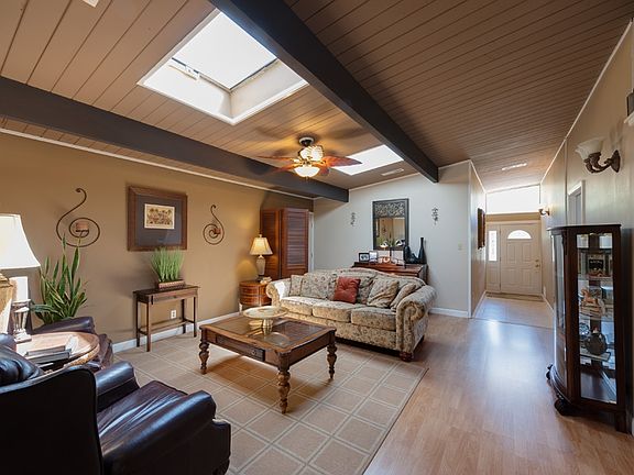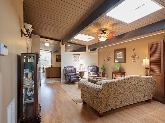 Elegant, spacious Eichler in the quiet Parkwood Estates neighborhood. Peaked roof with exposed beams and skylights for an open, airy feel. Updated eat-in kitchen with granite counters and breakfast bar, stainless steel appliances and extensive cabinetry. Four bedrooms featuring a master with updated bath and a slider to the beautifully landscaped backyard. List of features continues with a bonus room, dual sinks in the hall bath, dual pane windows, and a .22 acre lot with large side yard for RV parking or more. Walking distance to Concord Community Park and close to schools, shopping, and Bart.