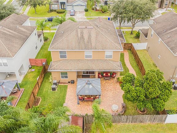 SPECTACULAR ONE OF A KIND! THIS AMAZING 6 BEDROOM 3 BATH HOME WITH MANY UPGRADES. AS YOU ENTER THE FRONT DOOR YOU ARE GREETED INTO THE OPEN FOYER WITH SOARING CEILINGS, THE FORMAL LIVING/DINING ROOM COMBO AND THE STAIRCASE. YOU WILL ALSO FIND THE DOWNSTAIRS BEDROOM AND BATHROOM. AS YOU CONTINUE DOWN THE HALL YOU ARE GREETED BY THE ENORMOUS OPEN KITCHEN WITH AN ISLAND, CONTEMPORARY BACKSPLASH, STUNNING 42 INCH CABINETS, CUSTOMS LIGHTS, CROWN MOLDINGS AND RECENT UPGRADE STAINLESS STEEL APPLIANCES. THIS KITCHEN OPENS UP TO THE SPACIOUS FAMILY ROOM WITH ENGINEERED WOODAND CROWN MOLDINGS FOR YOUR FAMILY ENTERTAINMENT. EAT IN NOOK OVER LOOKING THE LARGE BACK YARD WITH PAVERS, GAZEBO, AND LUSH LANDSCAPING. WHEN YOU WALK TO THE STAIRCASE YOU WILL ENTER THE MASTER BEDROOM WITH LARGE WINDOWS FOR GREAT VIEWING HAS TWO LARGE WALK IN CLOSETS. THE MASTER BATH HAS A GARDEN TUB AND SEPARATE SHOWER WITH TWO DOUBLE SINKS. THIS FLOOR HAS 4 ADDITIONAL BEDROOMS AND ANOTHER BATH ROOM. ADDITIONAL PERKS IN THE HOME INCLUDE: RECENTLY PAINTED INSIDE AND OUT, CROWN MOLDING, DECORATIVE FIRE PLACE, SEAMLESS GUTTER, BEAUTIFUL LANAI WITH WOOD CEILING, NEW UPGRADED WATER HEATER, KINETICO WATER SOFTENER AND MOVEABLE FIRE PIT IN THE BACK YARD FOR FAMILY FUN. CALL AND MAKE YOUR APPOINTMENT TO SEE THIS HOME TODAY. YOU WILL NOT BE DISSAPPOINTED.