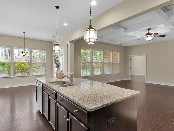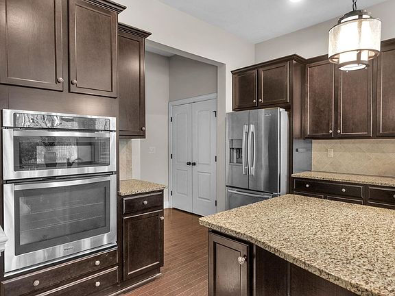 Welcome to this beautiful home! The high ceilings and natural light make for a bright and spacious feel, and the built-in cabinets in the office are a great touch for added storage and functionality. The wainscoting in the dining area adds a touch of elegance and sophistication to the space, and the stone gas log fireplace in the family room is perfect for cozy nights in. The coffered ceiling adds a decorative element to the room, and the large island with granite countertops and gas cooktop is perfect for entertaining or preparing meals. The primary bedroom with a trey ceiling and large en-suite bath sounds like a luxurious retreat, and having the largest lot in the neighborhood with in-ground irrigation is a bonus for maintaining a beautiful outdoor space. Overall, it is a wonderful home with many great features!