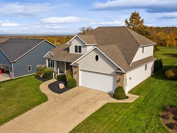 Immaculate, 5 bedroom, 2.5 bath home located in Harbor Ridge Subdivision. Enjoy beautiful Lake Erie & golf course views from your own patio & back yard! Meticulously maintained inside & out! The desirable open floor plan includes a spacious, eat-in kitchen with plenty of solid surface counter tops, a breakfast bar, a large pantry & includes all appliances. The formal DR is currently used as an office/den. The LR features cathedral ceilings, hardwood flooring, and a cozy gas fireplace. Desirable FF laundry & powder room! FF master BR includes an ensuite bath with separate walk-in shower & tub. 4 nice sized bedrooms and a full bath complete the second floor. Two car attached garage & a full, large basement for tons of storage! Just minutes to local colleges, I-90, the Bayfront Parkway, restaurants, & beautiful Presque Isle!