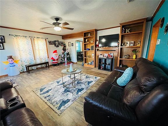 Charming two-bedroom, one bath home, circle driveway for up 5 vehicles with secured back yard access. Perfect for work equipment! Also, 12 by 20 storage building. The home features two good size bedrooms, one bath, large living area, dining area, full kitchen, and a large sunroom that could be used as an additional bedroom. Great Location for workspace office!