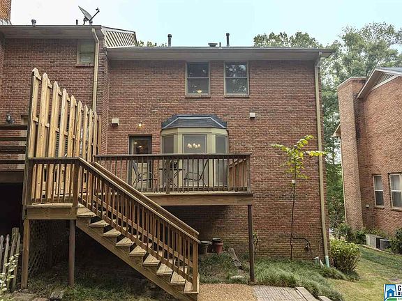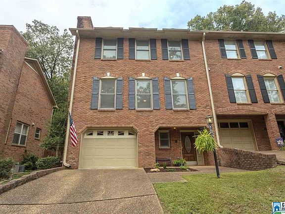 One of the largest floor plans in the neighborhood, this full brick, end unit has a very desirable location and is ready for a new owner to give it their own style. It has brand new neutral paint in main living area, carpet only 2 years old & very generous size rooms throughout the home. At the entry foyer level, you have a garage with room for 2-car tandem parking and tons of space for workshop. Up the stairs to the main level you have a great room with fireplace, built in bookcases & ceiling fan. There is a freshly painted formal dining area with new lighting and an eating area in the newly updated kitchen, yes all appliances remain.The kitchen has a bay window that overlooks beautiful private wooded back yard with your own Sun Deck! Upstairs is the master suite with huge walk-in closet and great master bath. The 2 additional BR's are very nice size and have great closet space. Additional full bath level 2 with double vanity! Come home to this very spacious home in Hoover!