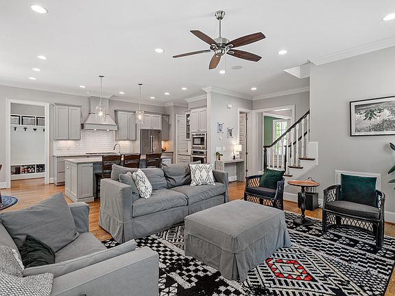 Minutes from North Hills sits an incredible ITB gem: dreamy screened porch, luxurious kitchen, and much more. This five-bedroom, 3,550 SF home was built in 2013 by DJF Builders, and the value at this price rivals larger new construction nearby. The downstairs office/study features sliding glass doors for noise privacy. The open kitchen shines with high craftsmanship: all cabinets and drawers are soft-close with dovetail joints. Living room is equipped with in-ceiling surround sound. Upstairs, the bright primary bedroom steals the show: tall trey ceiling, large dual-entry walk-in closet, and a dreamy, bright bathroom with a standalone tub, dual vanities, and tiled shower. The remaining four bedrooms are also on the second floor, around a central, convenient utility room, with a standalone sink and lots of cabinet storage. The two front bedrooms share a cute jack-and-jill bathroom, and the fifth bedroom could also make for a great office/bonus space. The spacious, finished third floor has two walk-in storage/mechanical rooms, one of which is already pre-plumbed for a fourth full bathroom addition (with window framing), making it a perfect third floor guest suite or rec room. The two-car garage also has space for a refrigerator and storage, and the back patio has plenty of room to entertain, relax, and shoot some hoops on the in-ground goal. The nearby amenities are endless, with proximity to North Hills, Midtown, East End Market, Raleigh Iron Works, and Downtown.