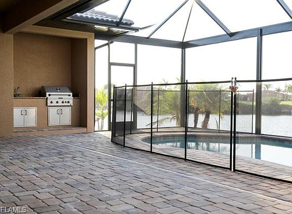 Stop waiting to live your waterfront dream! The beautiful side entry garage version of the Antigua is situated on a wonderful gulf access canal in SE Cape Coral. This 3 bedroom 3 1/2 bath pool home has all the features--tile roof, brick pavers on drive and patio, all wood cabinets w/42 inch uppers, oversized designer tile, impact glass windows/doors, volume and tray ceilings, crown molding, luxury bedroom carpet and granite in kitchen and baths. Fish right out your back yard or take 15 minute boat ride to river on your way to Fort Myers Beach or Sanibel, fast access to Del Prado amenities and shopping, why spend more? Call for an appointment to view one of our completed homes, you WILL be impressed with the value. ACT NOW to select your colors.