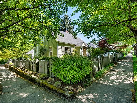It's the perfect time of year to discover this exquisite Cape Cod in coveted Eastmoreland. Revel in the oversized corner lot with its sought-after balance of sunny gardening space and glorious dappled shade from the legendary tree canopy. Located on the neighborhood's most private street, this jewel of a house has the functional upgrades you want in a classic home but never thought you'd find: all new double-paned windows, redone siding with full insulation, professional seismic retrofitting, updated plumbing, tankless hot water, and a mini-split for heating and cooling the second floor. Classic features include a covered porch and formal foyer, a flexible floor plan with bedroom and full bath options on the main level and upstairs, pristine hardwood floors, a delightful bright kitchen with nook, and a knockout basement media room with gleaming wood paneling and statement fireplace. But wait, there's more . . . have you been looking for a double garage paired with a character-filled vintage house? Amazingly, you can have that here, too, and not just any garage: this one is finished, insulated, and has attic storage and 60-amp power. Ready to explore the neighborhood? You're just a few blocks from shopping and dining on SE Woodstock, with easy access to Sellwood/Moreland and the MAX Orange Line. Hop across the Sellwood Bridge for quick access to downtown and Lake Oswego, or take your bike on the Springwater Trail. A fabulous summer awaits you in this immaculate, move-in ready home. (Psst! Ask your agent for the Features List!) [Home Energy Score = 6. HES Report at https://rpt.greenbuildingregistry.com/hes/OR10212879]
