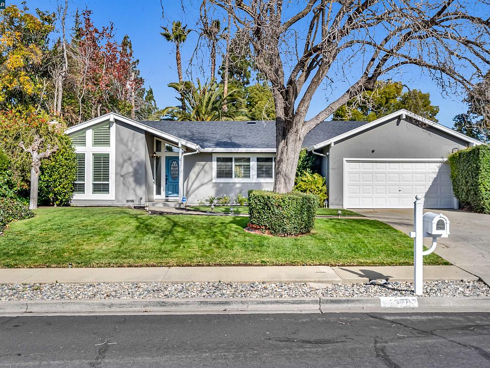 Step inside this wonderful Concord rancher, situated on close to a quarter acre corner lot. You will immediately notice the beautiful hardwood flooring throughout welcoming you into the bright & airy living room with vaulted ceilings & plantation shuttered windows. The open flow seamlessly connects the living room to the formal dining area, creating the perfect space for entertaining. The decked out chef's kitchen features white shaker-style cabinets, recessed lighting, farmhouse sink, updated appliances, & sleek quartz countertops complemented by a subway tiled backsplash. Your primary suite is tucked away at the back of the home with sliding glass doors accessible to the pool area. Enjoy 2 additional bedrooms & a modern hall bath with gorgeous quartz countertops & dual vanity. The spacious two-car garage currently functions as an additional family room, with large storage cabinets & plush wall-to-wall carpeting. The private backyard oasis features the sparkling pool with mature trees providing ample shade on hot summer days, & a practical side yard to be used for additional storage or potential dog-run. Conveniently located on a quiet cul-de-sac in a family friendly neighborhood close to Cowell Park, BART, easy access to Walnut Creek, & close to shopping & restaurants.