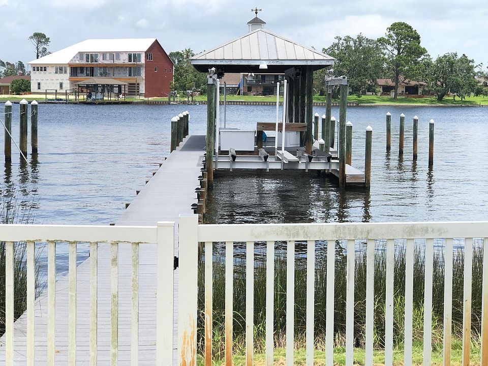 - Exterior: Fenced Back Yard, Sprinkler System, Pool, Boatlift, Dock, Patio Covered, Shower, Boathouse