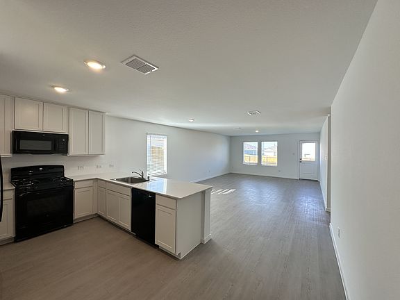 From the moment you walk in, you'll be greeted by an open and inviting floor plan featuring sleek vinyl flooring throughout the main areas and plush carpeting in the bedrooms for a touch of warmth and comfort. The kitchen is a true showpiece, showcasing elegant quartz countertops, stunning black appliances, and ample cabinetry perfect for cooking, entertaining, or enjoying quiet mornings with a cup of coffee.
