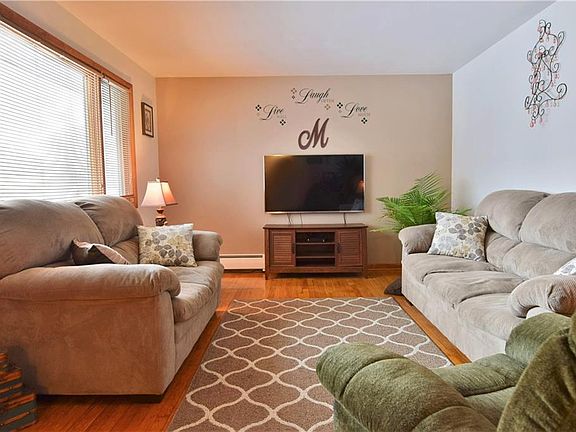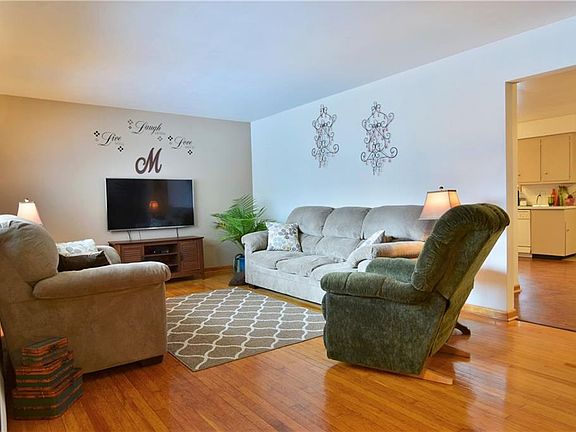This beautiful ranch is filled with gorgeous hardwood flooring, comfort and style! Sitting on a sizeable 1 acre lot, this home offers plenty of room both inside and out, complete with an oversized garage to include pass through entries. Inside, bright and welcoming rooms begin with a sun filled living room where natural light cascades through the front picture window. Formal dining looks on as it shares the open kitchen layout. Here an array of painted wood cabinets follows the long running countertops below and appliances stay. Relax in the nearby sunroom where windowed walls create a three-season getaway providing scenic backyard views. Three prominent bedrooms line the main hall that wraps the far end of the home. Each trimmed in warm hardwoods with matching trim work. The large master bedroom offers dual closet space and the two additional bedrooms are nicely sized with ample closet space. A brightly lit full bath joins them with a charming vanity and tasteful tile work with matching shower. Also in the main hall is a large cedar lined closet. Below, a full basement houses both laundry and utilities as it provides additional storage space. Additional features: New septic system July 2019, kitchen/dining room floor 2018, interior painted 2018, light fixtures 2018, newer roof, and so much more! This home comes with a one year home warranty.