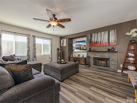As you enter, you're greeted by a grand entry with soaring ceilings, leading to an open and inviting floor plan. The large living areas include a cozy family room with a fireplace, perfect for gathering, and a gourmet kitchen with ample cabinetry, an island, and a dining nook.