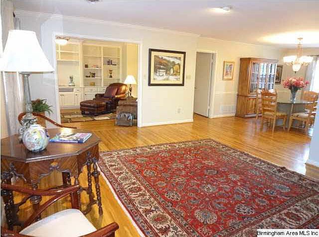 Fabulous "one of a kind" large condo-larger than many in complex-1548+/-ft as compared to some at 1124+/-. The difference is this home has a living room plus a den! Dining rm. will fit dining table for 6+/- plus area for a hutch or other furniture. Updated!!Newly remodeled kitchen-new stainless appliances, granite counter tops, plus gorgeous "hardwood flooring"! Sellers also added a large new glassed pantry for more useful counter and cabinet space-another extra! Sellers added and entire wall "Media Center" for tv,accessories, cabinet and drawer storage- another extra! All rooms are unusually large-great space for "king sized" bedroom suite and the newly styled "oversized" furniture! Like living in a house. Also, "five" closets besides bedroom closet! Other storage-pull down staircase & storage unit in basement! Full sized washer/dryer-stays.5+/-min.to UAB, down town areas Crestline & English Villages! Park for "play time". Tons of parking for extra cars! Has it all!