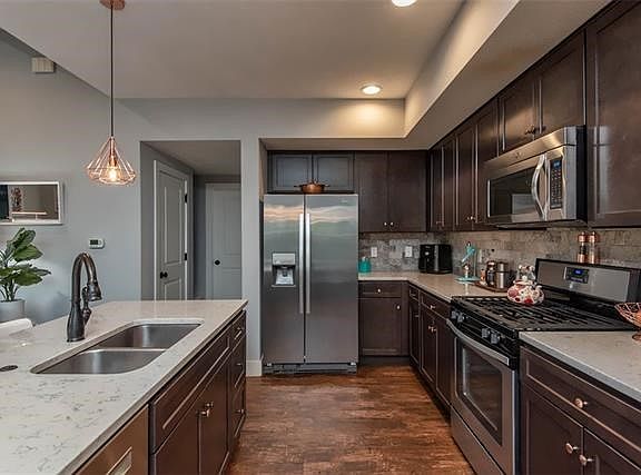 Incredible opportunity to make this beautiful Fritzel home all yours! Popular floor plan in Hutton Farms, perfect for entertaining family &friends! Features include main level living, vaulted ceilings, open floor plan, kitchen island, custom quartz countertops, unique lighting,covered patio with custom built pergola and stone raised flowerbed, fenced in back yard, and gated community. HOA covers lawnmaintenance on unfenced areas, snow removal on streets and water & maintenance for Sprinkler system 2022-08-17