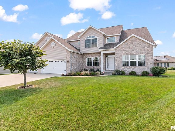 The essence of simplicity and style describes this immaculately maintained 2 story home in popular Mill Creek Subdivision. Built in 2019 this home shows like brand new with beautiful hardwood floors throughout the main floor, 9' ceilings, large windows allow natural light in every room. Custom designed by the owners for lovely southern exposure for the sun's warmth in the winter. The main floor features an office open formal dining area, family room with fireplace, opens to kitchen. The kitchen features maple cabinetry, island, stainless appliances & quartz countertops, pantry and breakfast area .Large patio doors open to the deck and spacious back yard. Upstairs are 4 generous sized bedrooms with 3 guest bedrooms and a primary suite. Both the guest bath & primary bath feature 2 sink vanities. Primary bath has large soaking tub & 5' walk-in shower. No detail was left out from this energy efficient 2x6 construction and the rounded edge drywall corners. The basement is ready for your finishing touches and features 3 daylight windows providing tons of natural light for a family room or artist studio. The potential 5th bedroom has a full egress window, plumbed for bath and lots of storage space. The 3 car garage provides additional storage space. Perfect location close to the Bike Trail, 2 parks, restaurants, shopping, schools etc. Pre-inspected by Teague Home Inspections. Showings to begin 9/6/2024.