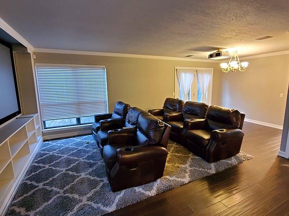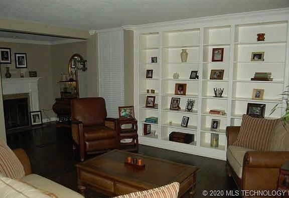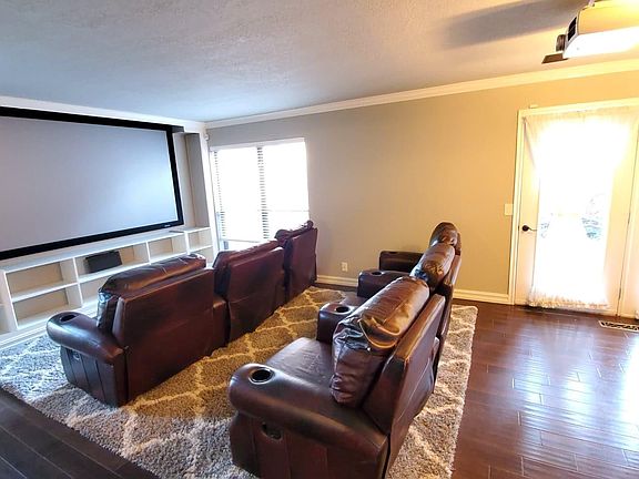 Beautiful South Tulsa home in Jenks Schools. Hardwood floors in Formal living, currently set up as a theater w/ 110" screen, 6 theater chairs & Epson projector. This rm also has wood burning FP. Kitchen w/granite, stainless appliances & open to 2nd liv w/view of gorgeous lagoon finish gunite pool. Beautiful landscaping w/banana trees. Quiet private lot w/Mature trees & walking distance to neighborhood park/pool. Jenks elementary only 2 min drive or bus stops in front of home! Won't Last! Owner/Associate.