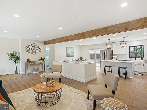 This home is a gem to behold. Its rural location gives the best of both worlds. Only 18 miles to Greenspring Station/695 and about 1 mile to the Prettyboy Watershed Area for hiking or fishing. The lot size is just big enough to enjoy family activities but not so much that you spend hours cutting the grass. This home has been completely rehabbed rancher with an open floor plan. All new Anderson windows, new doors (including 2 sliders, 1 French and a beautiful front door). All work completed by licensed professional with permits and inspection by CC Inspectors. New electrical and plumbing throughout both levels. New water tank & water heater and new water line from the front of the house to the water tank. New installation and drywall. 3 completely remodeled full baths & 1/2 bath, new French drain in basement, new radon system inspected, new huge back patio and front porch, Garage door replaced, beautiful electric fireplace on first floor with shiplap surround, Completely remodeled kitchen with island and quartz countertops and backsplash. all new appliances. Nice addition has cubbies in the laundry room. Lower level-- huge family room, game room, exercise room with an office ..... but your home to make it what you want. Sliding doors to outside with approximately 9 foot wide steps to backyard. All recessed lighting with light from two windows. Also has a full bathroom with shower.