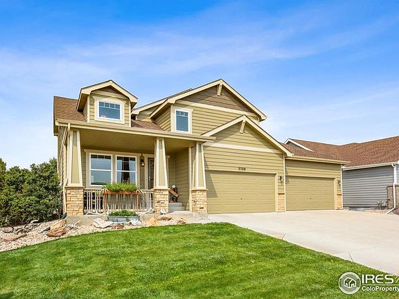 NO METRO DISTRICT TAX & VERY LOW HOA DUES! This beautiful home is perfectly situated on a south-facing lot in The Knolls subdivision. Featuring an impressive & hard to find, four-car, front-load garage (finished & painted) with plenty of space for your vehicles, tools & hobbies. You'll immediately notice the customized exterior elevation that gives this home a stand-out curb appeal compared to its rivals. Fall in love with the large covered front porch, perfectly manicured landscaping + newer exterior paint & shingles (2017). Step inside to an open floor plan with vaulted ceilings, new hard-surface flooring (both beautiful & durable) & perfectly placed windows that allow for plenty of naturally soft light. Every home should come with this expansive mud room/drop zone when you enter from the garage, which offers the perfect place for boots, coats, & backpacks. The lovely kitchen features a pantry, beautiful SS appliances, naturally warm wood cabinets, bar-stool height countertops & an eat-in dining area with backyard access. Enjoy the open & upgraded banister railing staircase on your way to the upper level, where you'll find all four bedrooms, including the primary suite + conveniently located laundry = no more lugging laundry hampers up & down the stairs! The large unfinished basement allows for great storage or boundless potential with bathroom rough-ins & secondary laundry hook-ups + with the tankless, on-demand hot water heater, you'll never have to worry about running out of hot water again! Enjoy the small-town charm that Wellington has to offer without sacrificing a long commute. No metro taxes & low HOA dues (that include non-potable irrigation water) make this a more affordable option with a lower monthly payment! Don't miss out - contact broker for a showing today!