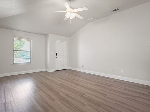 Welcome Home! This spacious 3-bedroom, 2-bathroom rental home boasts over 1,500 square feet of living space and features an inviting open-concept floor plan. The bright and airy interior is enhanced by vinyl plank flooring and abundant natural light throughout. The modern kitchen showcases granite countertops and ample cabinetry, perfect for both everyday meals and entertaining. The secluded master suite offers a private retreat, complete with an en-suite bath for added convenience. Step outside to enjoy the expansive backyard, ideal for gatherings or simply relaxing in the fresh air. The property also includes a two-car garage for your convenience. Located in a friendly subdivision, this home is just steps away from a community park featuring a swimming pool, volleyball court, and playground perfect for family fun and making new friends. Don't miss out on this wonderful opportunity to make this lovely home yours!