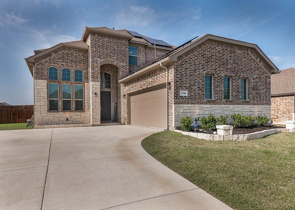 GORGEOUS 2 STORY D.R. HORTON in GREENWAY TRAILS! SPOTLESS and LOADED with UPGRADES including ENERGY SAVING SOLAR PANELS TO BE PAID OFF AT CLOSING BY SELLERS!! Modern open floorplan! Large Gourmet Kitchen with Granite Countertops, tiled Backsplash, Gas Cook top, Stainless Steel Appliances, 42 inch uppers, Breakfast Bar, walk-in Pantry, over sized laundry with Cabinet and drip dry rack. Two Dining-opt front Office, beautiful wood look tile floors and crown molding. Spacious Living with corner Fireplace, gas logs and starter. Guest Bath, split level staircase, hall lighted art niche. Large private En-Suite down with tray ceiling, separate vanities, oversized rimless shower, Garden Tub and walk-in Closet. HUGE upstairs GAME and MEDIA ROOM, Stone landscaping Borders, Sprinkler System and Gutters. Front swing drive, covered back Patio, large fenced backyard, walking distance to Community Pool and Playground! Close proximity to HWY 360, 287, Shops, Restaurants, Joe Pool Lake, Parks and more!