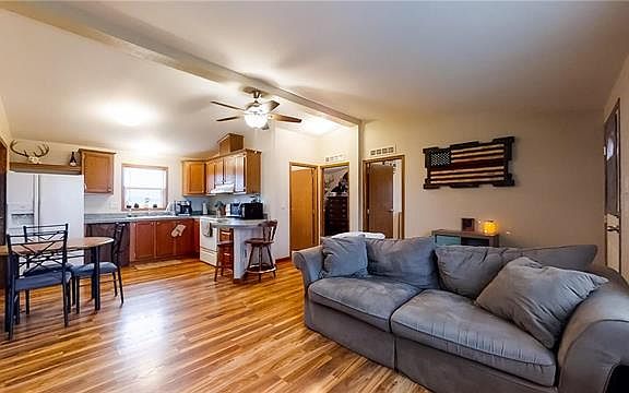 3 bedroom, 2 full bath, move-in ready home located on one acre outside the city limits. Nice 30X50 outbuilding with concrete floors and 2 overhead doors. Total electric home has open living, dining and kitchen w/breakfast bar, laundry room with extra pantry storage. Newer flooring throughout, stove, refrigerator, washer/dryer all stay. New metal roof 4 years ago. Nicely located with no close neighbors.