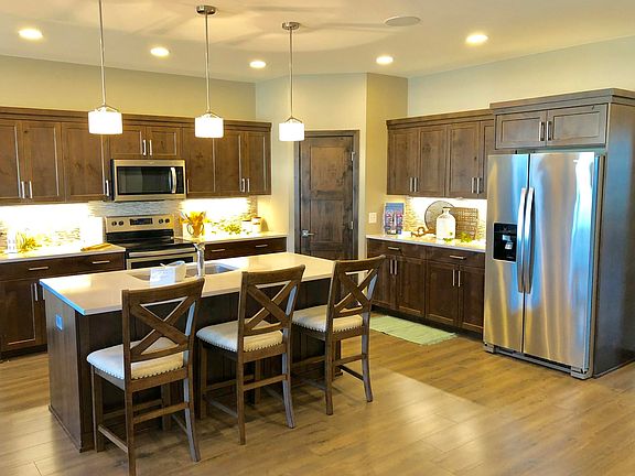 This Gorgeous patio home features a spacious 1748 square feet of one level living with 9 foot ceilings. The open main level is ideal for entertaining, flows from living room, dining room and kitchen with a beautiful tiled fireplace. Kitchen has custom alder cabinets, stainless steel appliances and a center island, quartz countertops and tile backsplash. Master suite features walk-in shower and walk in closet, additional bedrooms/office located off of foyer area. You will love spending time on the covered back patio. Also included is a three stall garage that is completely finished with heater and water. Call you favorite agent today!!
