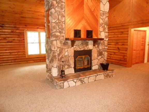 BEAUTIFUL LOG HOME. THIS 3 BEDROOM, 2 BATH HOME, FEATURES A LARGE LIVING ROOM DINING ROOM COMBO, FAMILY ROOM WITH FIREPLACE, CATHEDRAL CEILING IN BOTH. NEW CARPET, GREAT KITCHEN, ENTRY WAY, FRONT PORCH AND IS READY FOR YOU TO MAKE IT YOUR HOME.