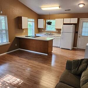 Move in ready 3 Bedroom 1 Bath home in a great location. Nice open floor plan with cathedral ceilings in living room and kitchen. Large covered front porch and a privacy fenced back yard.