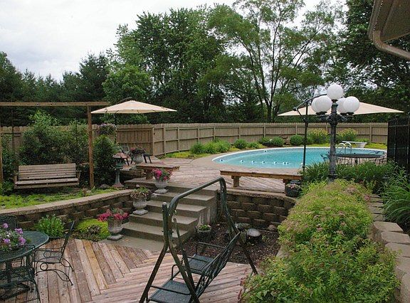 Serenity in this beautiful 4 bedroom home on 1 acre. Large open kitchen with stainless steel appliances open fireplace & sliders to large screened in porch. Hardwood floors throughout. 2 fireplaces, one see through in the kitchen & living room & another in your full finished walk out basement, large master suite w/ hot tub & changing area, fenced in back yard w/ tiered deck & patio, plus a beautiful in ground pool.
