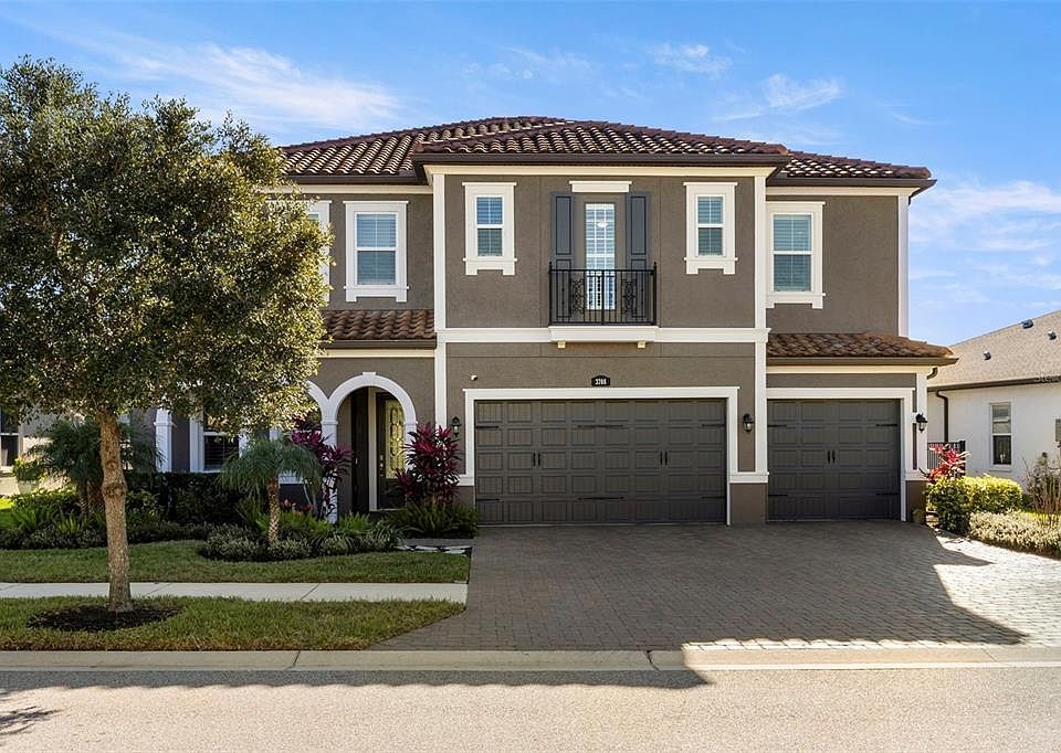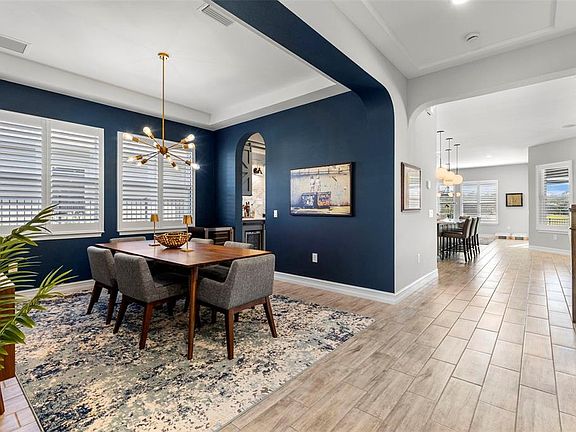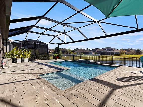 We’re pleased to introduce this exceptional Lutz residence in one of Tampa Bay’s most desirable gated communities — prized for A-rated Steinbrenner HS, an outstanding lifestyle, and convenient commute times. Designed for effortless entertaining & everyday comfort, the home offers expansive living spaces, abundant natural light, and seamless indoor-outdoor flow that elevates daily living. Arrival begins w/ a 3-lane paver, a 3 car garage & a driveway accommodating up to 6 vehicles. Manicured walkway leads to a lovely landscaped entry & a striking triple-arch portico, setting a refined architectural tone. A leaded glass front door opens to a stately foyer, complemented by a front-facing private office - ideal for remote work while maintaining privacy. Entry from the garage reveals a drop zone, w/ direct access to the laundry room. An elegant formal dining room introduces the crisp four-inch white plantation shutters which adorn every window. Navy saturated walls pair beautifully w/ gold light fixtures. Nearby, a butler’s pantry features quartz counters, tiled backsplash, 2 beverage chillers, a morning bar & oversized walk-in pantry. Wood-look tile connects all of the ground floor living spaces, creating continuity w/ thoughtful separation. The home unfolds into an open-concept kitchen & stately family room, anchored by expansive glass sliders that flood the interior w/ natural light & draw you toward the resort-style pool area. If the home has a heart, this is it — the kitchen showcases white perimeter cabinetry paired w/ sleek gray quartz counters which frame a dramatic oversize island featuring a gray base & luminous white quartz surface as well as exceptional storage. The family room features a custom floor-to-ceiling entertainment wall & tray ceilings, flowing seamlessly into the screened outdoor living area — expanding usable living space beyond 5,000 sqft. Nearby, a ground-floor guest bedroom (currently a home gym) & full pool bath adds flexibility for guests. Step outside to a 5-star resort-style retreat added in 2023, featuring an oversized covered lanai, outdoor kitchen w/ gas-plumbed grill, fridge, sink & storage, a panoramic screen enclosure, custom pool w/ sun shelf, bubbler, color-changing lights, heater & premium pump system. Upstairs, newly installed solid wood floors lead to a large bonus room. The three 2nd level bedrooms are arranged in a triple-split layout, each w/ an ensuite bathroom. The primary suite is a true sanctuary, offering tray ceilings, new high-end carpet w/ Tempur-Pedic padding, dual custom closets, a private office nook & a spa-inspired bath w/ white quartz, soft gold fixtures, oversized shower & soaking tub. The home benefits from nearly $200,000 in recent upgrades, reflecting thoughtful investment in both lifestyle & long-term value. Additional enhancements include a new 2nd-floor A/C (2024); whole-house water filtration; solid hardwood flooring upstairs; updated West Elm lighting; new ceiling fans in key living areas & lanai; redesigned front & rear landscaping; black aluminum fencing enclosing the yard; and a full interior & exterior repaint completed in Jan 2026. Located in Promenade at Lake Park, residents enjoy proximity to the Veterans Expressway, dining, retail & the 450-acre Lake Park offering trails, recreation & outdoor activities. Airport (18 min), Publix, St. Joe's Hospital & LA Fitness(4 min). A home of this caliber deserves to be experienced in person. Schedule your private showing today.