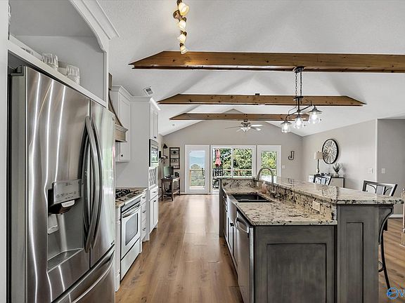 This beautiful 3BR/3Bath home located on peaceful Wyeth Drive is a must see! From the time you walk in the front door at this home, the year round views of beautiful Lake Guntersville are amazing. Features include laminate flooring throughout, large open eat-in kitchen, stainless steel appliances, pantry, and granite counter tops. This home also features a large back deck, full basements with garage access, hot tub room with backyard access, encapsulated crawlspace and pool table/game room. This entire home is perfect for spending time with your family and friends. BEAUTIFUL VIEWS of Lake Guntersville!