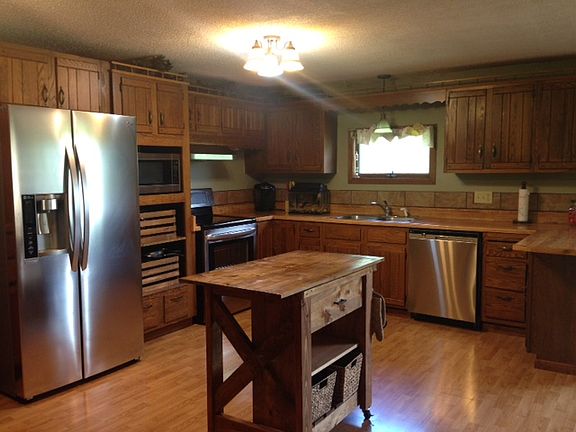 Move right into this charming 3BD rambler (3rd BD non-egress). You will love all the spacious rooms! Sliding glass doors off kitchen/dining room to a wrap around deck that is great for entertaining on summer days. Brick fireplace in the large living room has efficient pellet stove insert. Nice little family room in lower level, plus a room with a shower with plenty of space to finish into a large bathroom. Double garage and steel carport all on a nice private setting and a great big yard. Compliant septic!