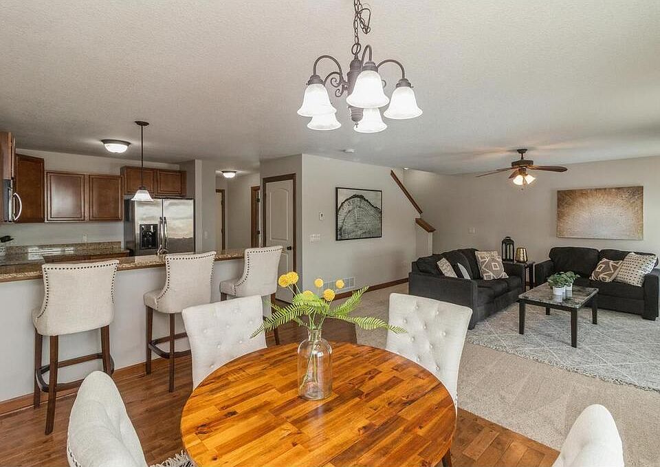 Close to Schuler Elementary this 2 story stunning home is well maintained! Front flex/bonus room features French doors. The open concept eat in kitchen features stainless steel appliance and granite countertops. The main level is finished off with a 1/2 bath and spacious living room with a fireplace. The 2nd level features a large master suite with walk in closet. A full bath, 2 bedrooms and upstairs laundry finishes off the second floor. The walkout lower level has plenty ample space that includes- living space, 3/4 bath and plenty of storage space. The garage is clean and has epoxy floors! The fenced in backyard has a patio and deck! Property has irrigation. Don't miss living in this highly desirable neighborhood.