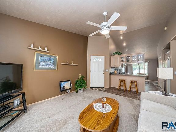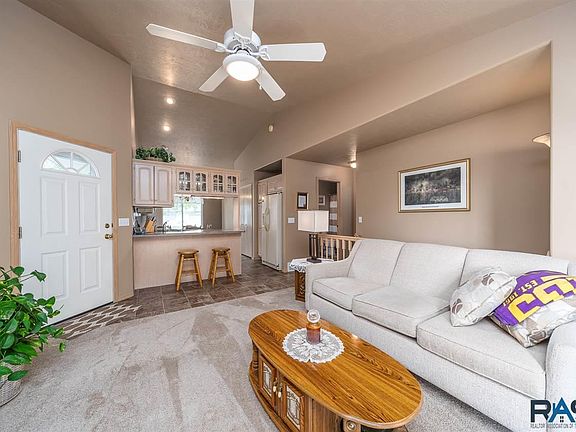 Beautiful End Unit townhome in Southeast Sioux Falls. Open main level features vaulted ceilings, custom cabinets, great counter space and abundant natural light. The main level includes a large master bedroom with a walk in closet and access to the back deck. The lower level features a spacious family room with a gas fireplace, a second bedroom, full bath, and a slider the the backyard patio. This unit includes updated flooring and interior paint, a fenced in backyard and private deck. Great storage throughout, a deep single stall garage, and little maintenance with no mandatory HOA fees.
