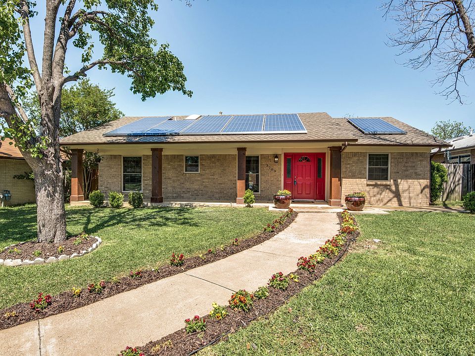 This light, bright home with great curb appeal features an open concept living/dining/kitchen area. The spacious living room with a brick fireplace and French doors opening to the backyard adjoins the kitchen with handsome tile counters, stainless steel appliances and an eat-in breakfast/dining area. There is a cute nursery/office/additional bedroom just off the master bedroom. Each bathroom features various updates such as vessel sinks, soaking tube, glass surround and separate shower. The garage has been converted to a game room, however, it retains a working garage door and offers flexibility to leave it as is for summer parties around the sparkling pool or to convert it if desired. The home also boasts double pane windows, wood blinds, fresh paint, recent back fence and gate, 50 solar panels for maximum energy efficiency and lower utilities. Newer AC, water heater installed in 2014. Converted garage is not included in the square footage.