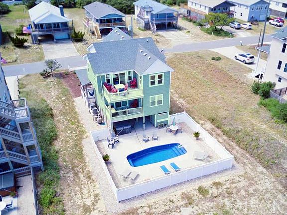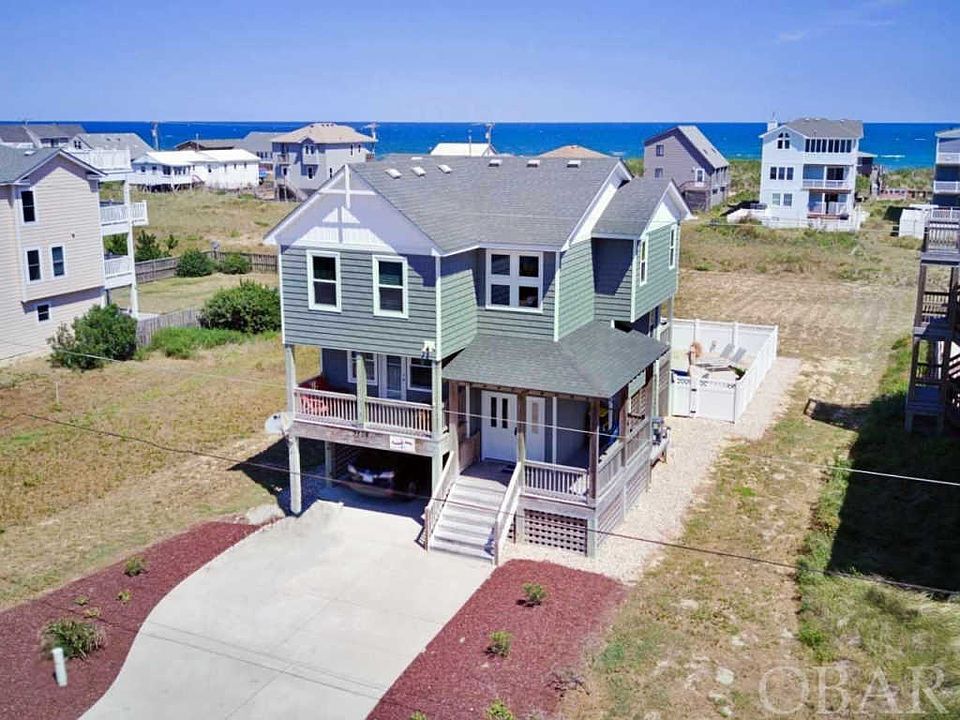 A crisp, bold color palette handsomely complemented by the luster of gorgeous hardwood floors simply takes your breath away when you enter this pristine, lovingly cared for home in the historic town of Kitty Hawk. Oh, did we forget to mention the ocean views? And that's it's only a short three-minute walk to the beach? This 4-bedroom, 3.5-bath home delights at every turn. It's tastefully furnished with hand-selected pieces that are warm and welcoming. The upgraded modern kitchen will satisfy even the fussiest of cooks with its granite counter tops, stainless appliances and ample seating (including bar-top) at which to sample and savor all the creative dishes. Spacious open concept living highlights the ocean views from rooms and deck spaces. The living area offers beautiful and comfortable seating and entertaining pieces. On the top floor you will love the Captain's quarters equipped with King bed and private bath. Travel to the mid-level where you will find an additional master suite with private bath, bunk room with beautiful deck views, and additional bedroom and shared bath. You will also appreciate the convenience of mid-level laundry. The ground level was thoughtfully designed with storage for all beach necessities, ample parking, and access to an entertainer's dream back yard. Outdoor space is equipped with all of the essentials to a beautiful vacation - new pool (2018), plenty of seating, hot tub, enclosed shower and bar area are all waiting for the adventurist! This home also boasts one of the best locations on the Outer Banks... walking distance to an uncrowded local beach, Johns (!), coffee shops and more! This home is ideal and we think all your heart could desire, whether it be a second home or continues as a proven investment rental. Don't wait to see this property and be anchor's away!