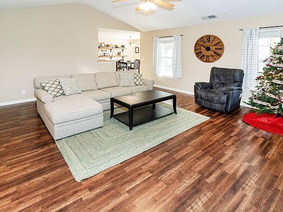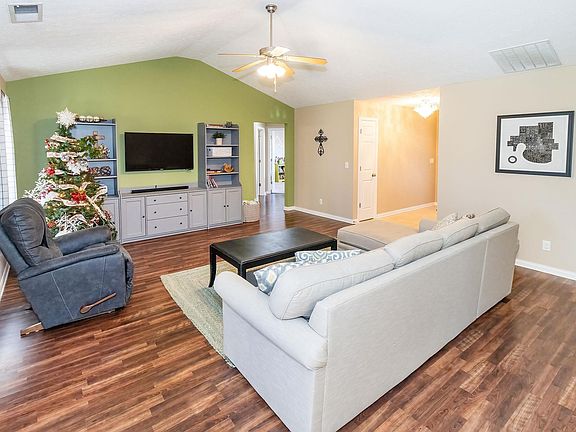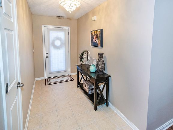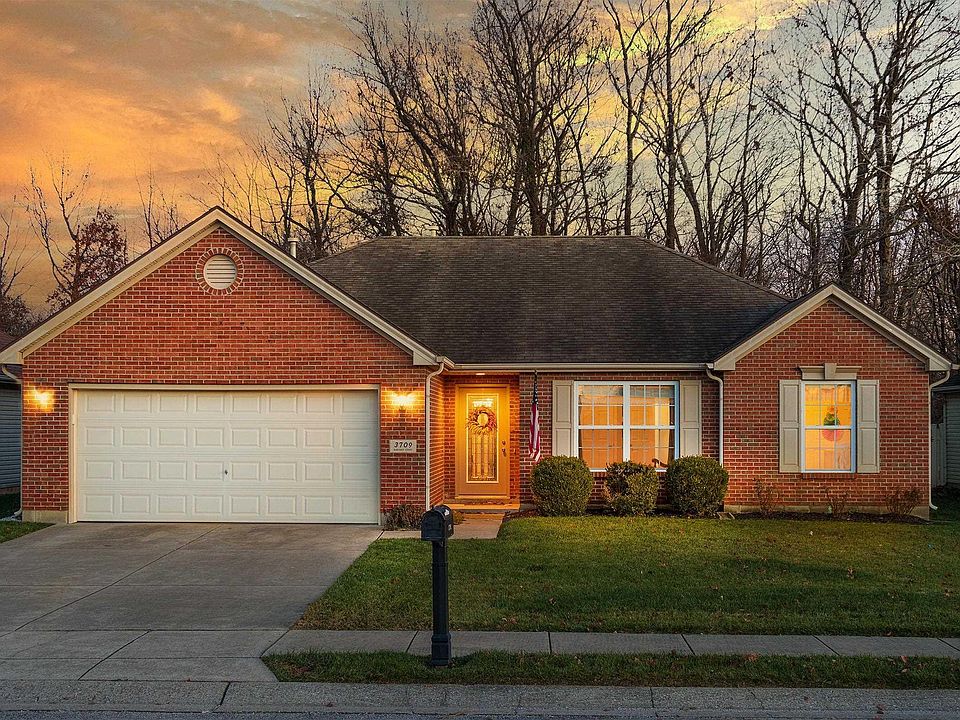 Discover the perfect blend of comfort and privacy in this 3-bed, 2-bath home with a 2-car attached garage in a neighborhood with your very own library! Nestled against a wooded backdrop, the living space is flooded with natural light and scenic views of Hummingbirds, deer, wild turkeys and birds of all kinds. The kitchen is well-appointed for daily living and entertaining. Enjoy tranquility in the bedrooms, including a primary bedroom featuring a large walk-in closet and ensuite bathroom. Step outside to a spacious backyard, complete with a patio. Conveniently located near Evansville's east side, this home offers modern living in a serene setting. Don't miss the chance to make it yours today! Per seller, W/H-new in 2020, HVAC new in 2021, entertainment center and TV mount included as well as kitchen appliances!