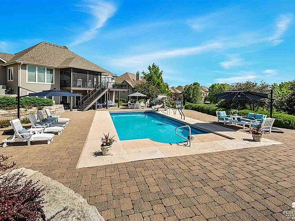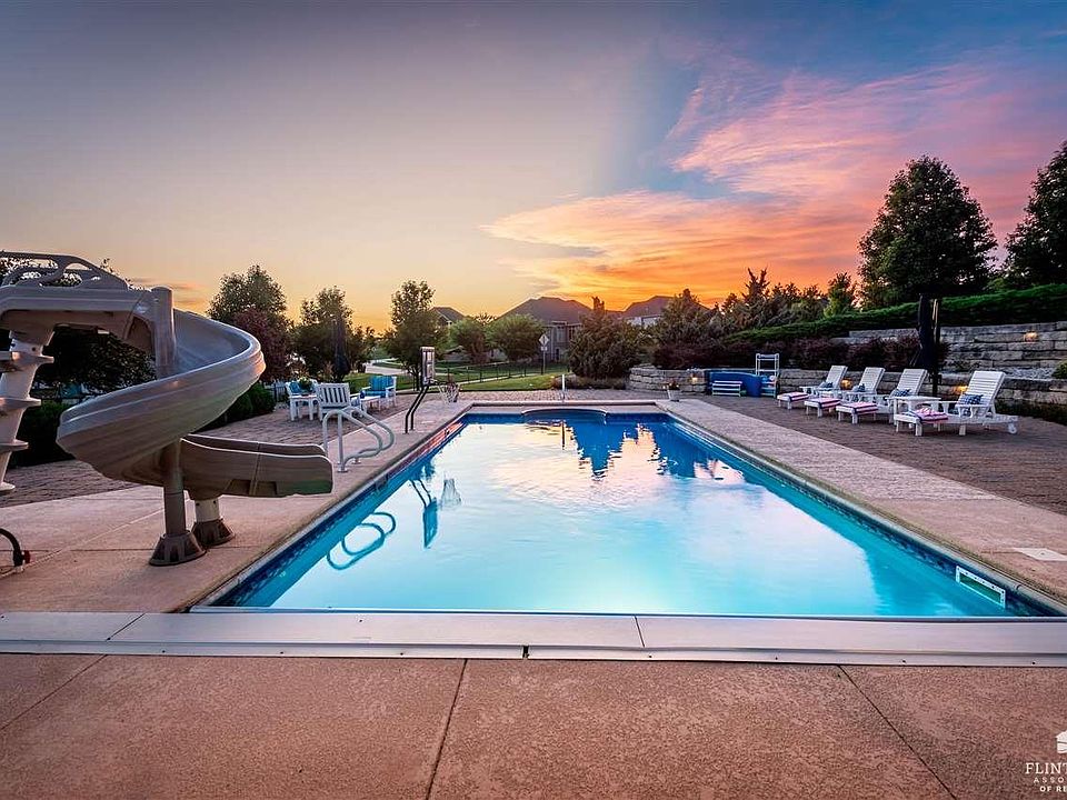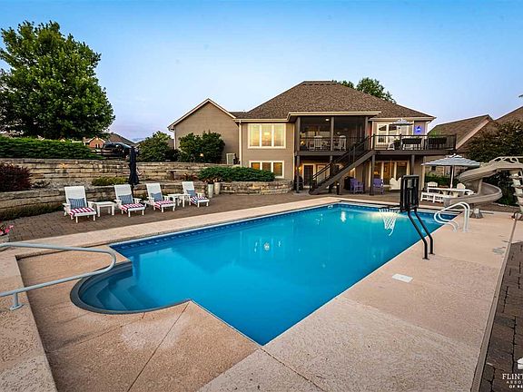 Truly a once-in-a-lifetime opportunity to own a piece of paradise! This gorgeous, custom-built home is perfect for those who love to entertain. As you step inside you are greeted by an open-concept living space that seamlessly connects the living room, formal dining and eat-in-kitchen. The living room features a beautiful fireplace, wood flooring and large windows, while the kitchen is equipped with updated appliances, a spacious island and access to the covered deck. Main level primary bedroom, laundry and two more bedrooms complete the first floor. In the basement you will find a large family room, wet bar, theater room, two more bedrooms, office, HUGE storage area and a walk out to the incredible outdoor entertaining area. The pool is surrounded by a spacious deck with comfortable lounge chairs and umbrellas, providing the ideal spot for entertaining, relaxation and sunbathing. The custom landscaping provides privacy and completes the feeling of a perfect oasis.