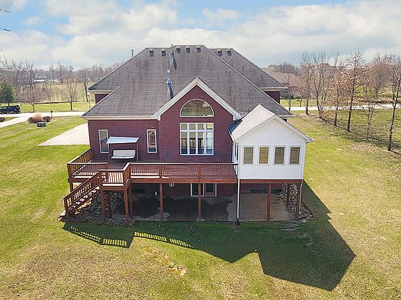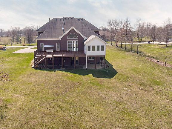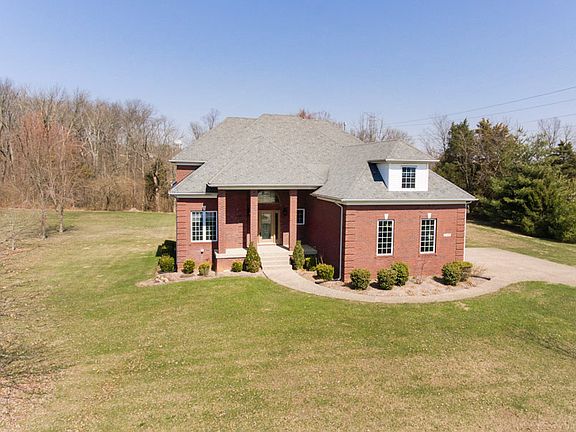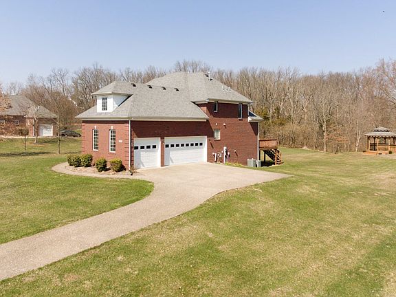 $20,000 price drop. Offering easy living with all the comforts of luxury in this 5BR/4.5BA brick home in the Woods of Hillview. From the covered front porch, enter the two-story foyer with Palladium window and be greeted by beautiful hardwood floors that will lead you into a spacious open floor plan. In the great room, you will be captured by the natural sunlight pouring through the floor to ceiling transom windows below a Palladium. Pick a book to read from one of the custom designed bookshelves/cabinets on either side of the gas fireplace. The formal dining room with its decorative double trey ceilings, crown molding, recessed lighting and arched doorways will absolutely create a festive ambiance while celebrating holidays.