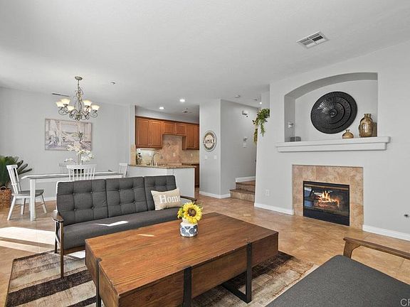 Beautiful 3 bedroom 2 1/2 bath townhome with a large private backyard and attached garages. Open floor plan, large windows, and high ceilings welcome you into a first floor layout that fills with natural morning light. Thoughtfully updated with freshly painted walls throughout in a modern palette, perfectly placed recessed lighting, and new living room blinds. Upstairs, you'll find the same beautiful color scheme along with new wood-like plank flooring and new vent fans in bathrooms featuring modern lighting. Two spacious upstairs bedrooms share a hall bathroom designed for convenience, featuring two sinks with a separate door for the shower area, making it easy for multiple people to use simultaneously. Beyond the hallway storage areas, the primary bedroom offers ample space to accommodate any size furniture, and possibly room to set up a home workstation or seating area too. This bedroom boasts of a roomy walk-in closet and a private ensuite bathroom with both a large soaking tub and a separate shower. The fully fenced-in backyard, framed by mature trees and lush greenery with no buildings behind it, offers a private space that’s perfect for relaxing or entertaining with ease. Mystic Point amenities include a swimming pool, spa, playground, BBQ areas, and plenty of parking. The area surrounding it, Calavera Hills, is known for its top-rated Carlsbad schools, community centers, parks, and scenic hiking and biking trails. And when you’re ready for fun in the sun, the beautiful Carlsbad beach is just a few miles away. Welcome home!