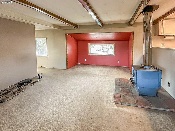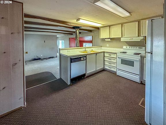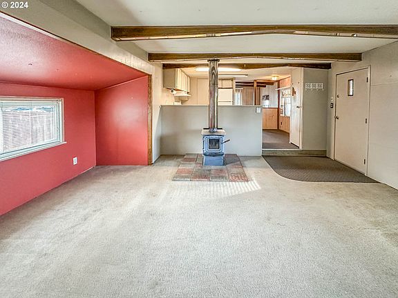 1974 Nashua single-wide with two bedrooms, one bath, living room, and sitting area. Certified wood stove. Vinyl windows, covered deck, fenced yard, and two large storage sheds.