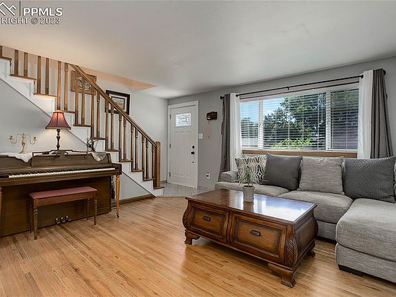 Charming 1 1/2 story with plenty of character and a verdant backyard oasis! This move-in ready home is on a .23 acre lot, is only 2 minutes from UCCS and features...15x17 living room with original quarter and rift sawn wood floors and French doors to the…adjacent 12x20 office with gas FP, built-in bookshelves and bay with casement windows…bright and sunny kitchen with gleaming white cabinets, granite counters, beveled subway backsplash tile, bay window overlooking the backyard, all appliances included, counter bar, walk-in pantry and ample recessed lighting...adjacent dining area with vaulted ceiling and skylights that opens onto the covered back patio…12x13 primary bedroom (large enough for a king bed) with original wood floors, full wall closet and chair rail detail...2nd bedroom overlooking the backyard, also with original wood floors…updated main hall full bathroom with glass block accent, easy-care tub/shower surround and chair rail detail...main level laundry with shelving and included W/D. Upstairs, you'll enjoy the angled ceilings throughout and the 14x16 family room with view of the mature trees...3rd bedroom...and 3/4 hall bath with corner vanity and clever storage cabinets. Outside, you'll enjoy the...15x22 covered patio overlooking the mature landscaping in the serene, private, fully fenced backyard...hot tub included...firepit with tree stump seating...and the perfect balance of sunny and shaded areas...storage shed with power and concrete floor...and oversized, finished and insulated 2 car detached garage with workbench accessible off the alley. .3 miles to Portal Park with playground, field, walking/bicycle paths and basketball court...2.7 miles to Palmer Park, 2.5 miles to shopping and dining at University Village...and only 15 minutes to Garden of the Gods and Downtown. Several bike trails close by, too!