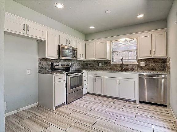 Updated Kitchen: Features modern applicances, ample cabinet space and a stylish backsplash.