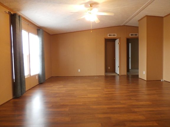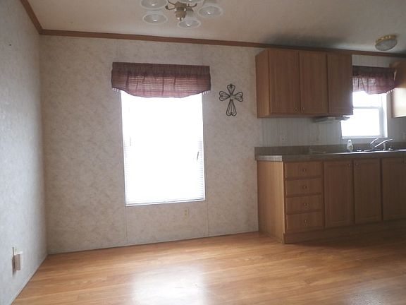 Double wide with 3 bedroom and 2 baths. Use of 2 spaces in the garage and partial lot. Owner maintains lawn. Open living, dining, and breakfast area. Kitchen has island. Owner suite has 2 sinks, 2 closets, separate garden tub and shower. Home has metal roofing, laminate and carpet flooring. Pets with prior approval and $375 non-refundable pet fee. Available now