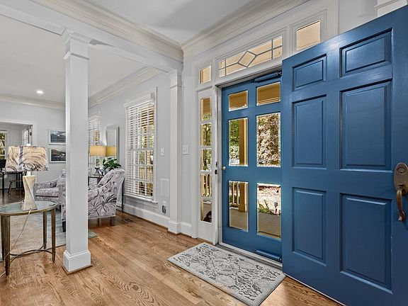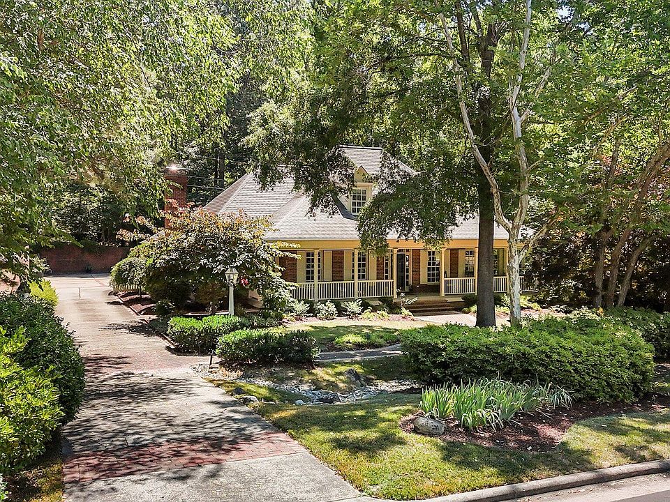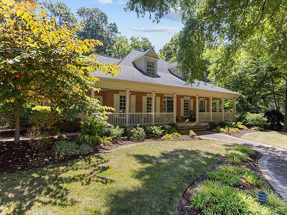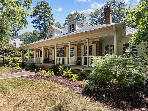 This charming Lowcountry 4 bedroom, 3.5 bath brick home is located in the highly sought-after New Hope Valley neighborhood. The brick walkway leads to the fabulous front porch that spans the home, offering a peaceful place to relax and enjoy your morning coffee or evening beverage any time of the year. Upon entering, you'll be greeted by a gracious living room with beautiful moldings that are throughout the main floor, a gas fireplace and built-in wet bar, and a formal dining room ideal for hosting dinner parties and family gatherings. The kitchen was beautifully renovated (2019) with new cabinets, natural stone counters, and stainless appliances, and includes a breakfast nook, providing a comfortable spot for casual meals. Laundry room is conveniently located near this space. Open to the kitchen is the light filled family room. This spacious room has a masonry fireplace, built-in cabinetry, and a door that leads to the front porch. This timeless residence features a spacious main level primary bedroom with two walk-in closets and a completely renovated primary bathroom (2020) with dual vanities, walk-in shower and heated floors. Connected to the primary bedroom and living room is a large office, perfect for one or more working from home. This room has two walls of windows and custom bookcases. Second floor has three additional bedrooms. One with an en suite bath and bonus space for study, work, crafts, or exercise. A Jack and Jill bath is shared by the other two bedrooms, one with an adorable Captain's bed. When stepping out to the backyard, one enters a magnificent outdoor oasis. The fenced-in yard features exceptional landscaping and a stunning two-level bluestone patio, perfect for outdoor dining, entertaining, and mindful relaxation. Plenty of room to add play structures and play areas. The detached garage offers convenient parking and extra floored attic storage space. This home combines classic charm, quality construction and modern updates! Don't miss this opportunity.