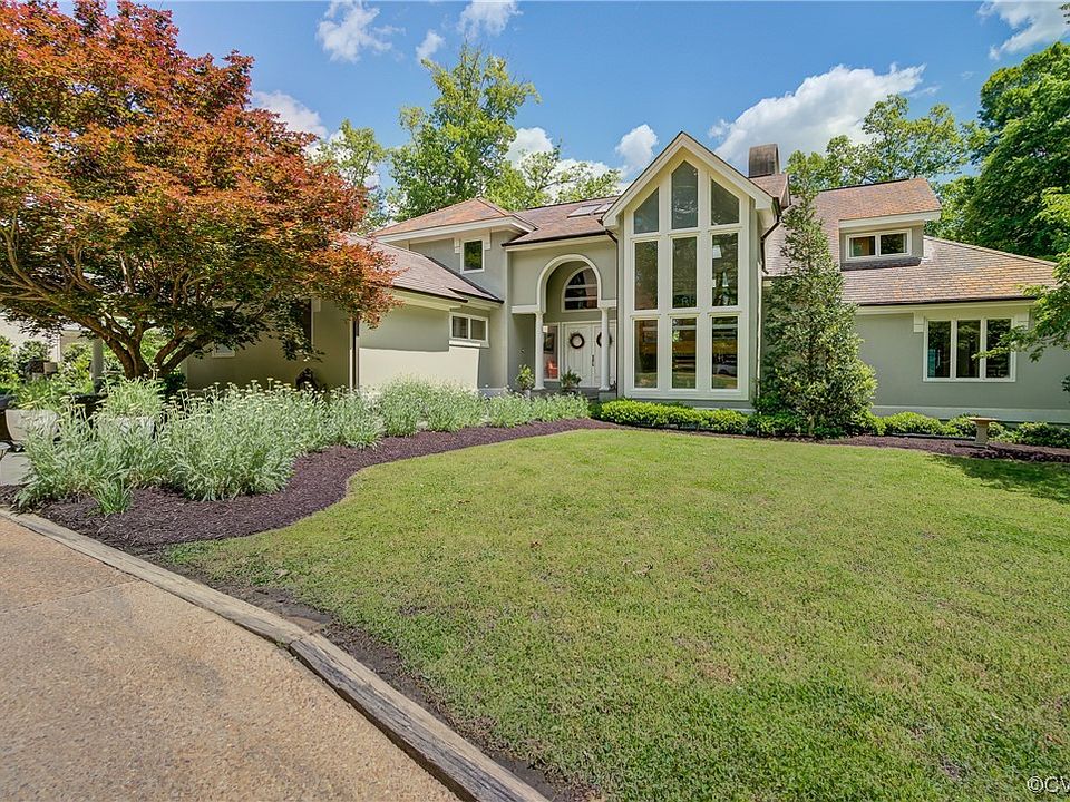Remarkable contemporary tucked away on 5 acres on Old Gun Road in Midlothian, Virginia. Easy living and nature at every turn from inside and outside of the home. The open floor plan was ahead of its time with a custom kitchen with spacious center island, wood cabinets with ample storage, eat-in nook with multiple windows, and a two-story foyer and exposed staircase. The vaulted family room has access to the raised deck, stone fireplace, wood floors, open dining room, and amazing light at every turn. The primary suite is on the first floor with a sitting room, huge walk-in closet, and full bathroom. Enjoy the side mudroom and laundry which serves as the best entrance coming from the covered breezeway from the two car detached garage. There are 3 total bedrooms on the second floor and a wonderful open landing area great for reading and catching the morning natural light. The lower level has over 1325 sqft of open space with a stone fireplace and currently used as a workout space, pool room, entertainment area with a half bath, bar and wine closet. Enjoy the expansive rear deck overlooking endless trees and a covered patio off side entrance. Special home on two great lots!