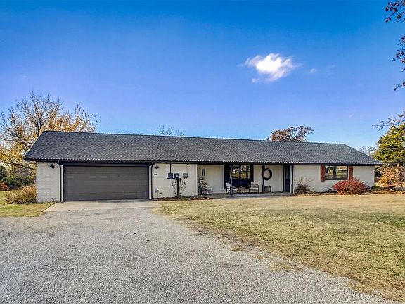 Do not miss the opportunity to live in this updated home in the Carl Albert School District. This home has so much to offer with over 2200 square feet on 2.27 acres. Once you walk in you will notice the oversized living room with a wood burning stove. This would be a great home to host gathering. The kitchen is a chefs dream with cabinets and countertops galore. The kitchen has everything you could want with built-in appliances including a gas range and a convection oven. The dining area is connected to the kitchen and has a built-in booth for seating. Both bedrooms are HUGE! The guest bathroom is a great size as well - with tons of storage. The master bedroom features two closets along with a remodeled bathroom. You will also love the large laundry room. The roof has Architechual Shingles and is only 3 years old! This home also features newer windows, CH&A that is only 6 years old plus storage everywhere! If that does not entice you then go outside and see the shop that is over 1700 square feet. The shop is set up with electrical along with a room that is fully insulated and has a window unit which would make a great pool house. The shop opens up to the pool deck a great place to enjoy the summers! There is also a fall out shelter in the backyard which can also double as a storm shelter. The sellers also have an assumable FHA loan at 3.25%!