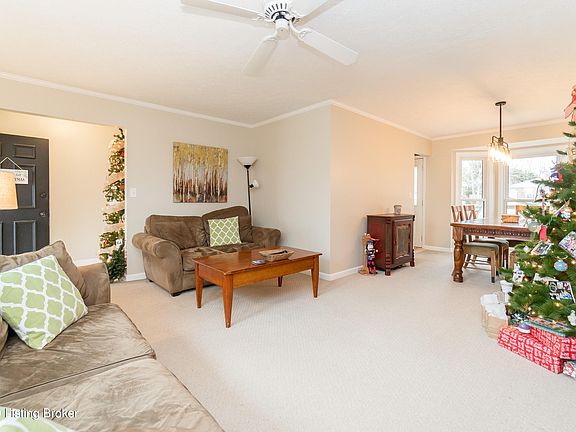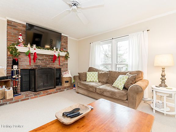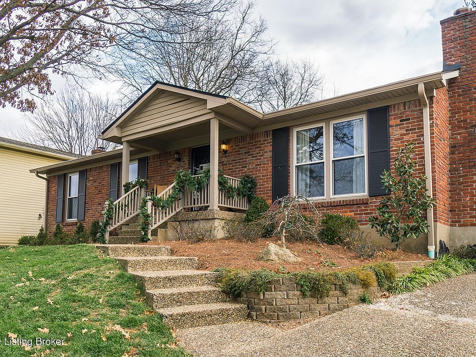 New year, new home! Conveniently located in Jeffersontown's Bristol Oaks neighborhood is this 3 bedroom, 3 bath ranch with a finished basement. Upon entering the house off the covered front porch, you're greeted by a spacious living room, complete with a stunning floor to ceiling brick fireplace, neutral paint and carpet colors, and a connected dining area, featuring a gorgeous bay window. As you head into the kitchen, you'll find ample cabinet and counter space, tiled floors, beautiful backsplash, and tons of natural light. Down the hallway are two large bedrooms, in addition to the first full bathroom. The spacious primary bedroom can be found at the end of the hall to the right, featuring two separate closets, and a connecting updated primary bathroom.