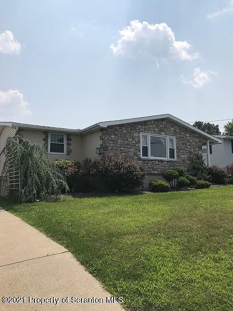 Fantastic ranch home located in desirable Greenwood section of Moosic. Home features a bright and open floor plan with beautiful views of Montage Mountain. Just blocks from stores, restaurants, and schools. Newer hardwood floors, new custom tile bath and shower, cultured stone and vinyl exterior, fenced in yard, replacement windows, stone gas fireplace, and split-duct a/c system. Plenty of off-street parking along with a two AND one car garage for the toys. Very efficient in heating/cooling with very low taxes!! Basement can easily be finished for additional living space. Don't miss this one!! Showings start July 30th at 3pm!