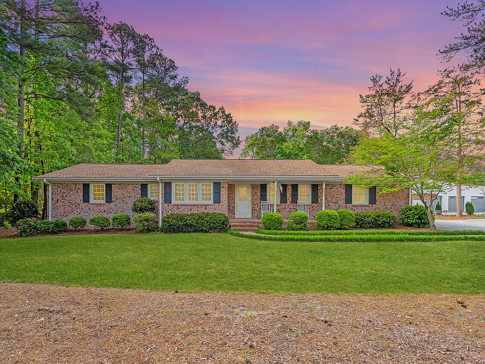 Super unique opportunity to own an ALL BRICK, ranch style home in almost an acre lot in wake county! 3 bedrooms, 2 bath, office plus a formal dining room. This beauty has a beautiful rocking chair front porch and large deck - perfect for summer BBQs. NO HOA. Gas powered generator installed 2023. Roof & Gutter guards approx replaced 7 years ago. Newer windows throughout. Water heater replaced 2022. Newer hardwood floors in family room w/ gas fireplace & built ins. All appliances convey. GE Stainless steel wall oven & microwave replaced 2023. 2-car carport w/ storage PLUS detached workshop/garage perfect for a car enthusiast/tools/lawn equipment and more! You will absolutely love this property!