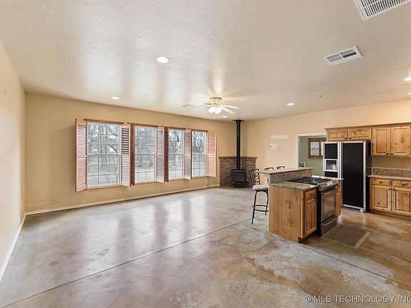 This 1921 square-foot home is located on 2.5 acres and just 2 miles west of Langley, Oklahoma, offering both space and privacy. The property features at two car carport and includes a 24 x 30 insulated shop, perfect for storage, hobbies, or a workshop. The home boasts a functional layout with three spacious bedrooms, which could easily be converted into four, along with four full bathrooms.