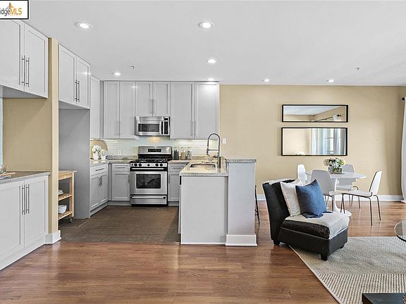 You will feel at home in this stunning and spacious condo located in Oakland's hip Pill Hill neighborhood. An abundance of natural light flows into the open floorplan creating an inviting space perfect for entertaining. With a seamless transition to the large outdoor balcony, guests will be enamored by views of the Town. This home has features that can be rare to find in a condo: in-unit washer/dryer, Oak hardwood flooring, a contemporary bathroom, and a shared rooftop which provides a wider view of Oakland. Making a meal at home will be effortless and "photo-ready" in this updated kitchen complete with stainless steel appliances, modern glass subway tile backsplash, and a bar area! Appreciate the design of this cozy 27 unit building completed in 2004 by famed architect Toby Levy as it sits high atop Pill Hill. Build a sense of community where you'll receive a smile from your neighbors, take part in the buildings annual food drive, or attend an art show put on by one of the residents